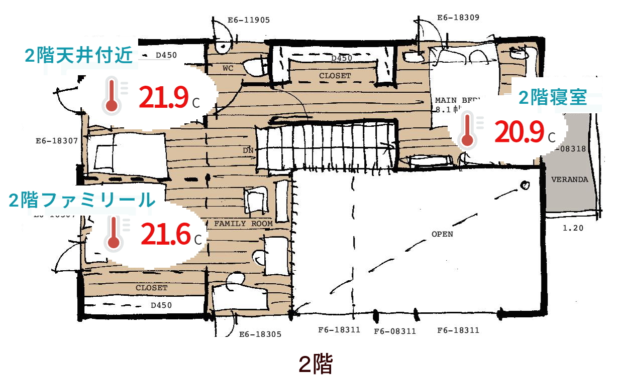 2026年元旦、エアコン21℃設定、モデルハウスの実測値